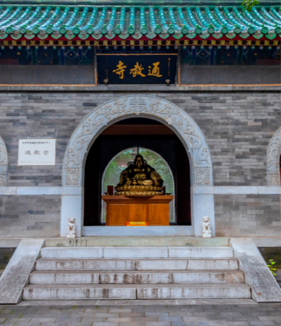 通教寺位于东直门内北小街针线胡同19号,是北京市著名的尼众寺院。该寺创建于明代,清代改建为尼寺,并更名为“通教禅林”,民国年间更名为“通教寺”。1943年,在此成立尼众八敬学苑。1996年正式颁发宗教活动场所登记证,是北京市级文物?;さノ弧?